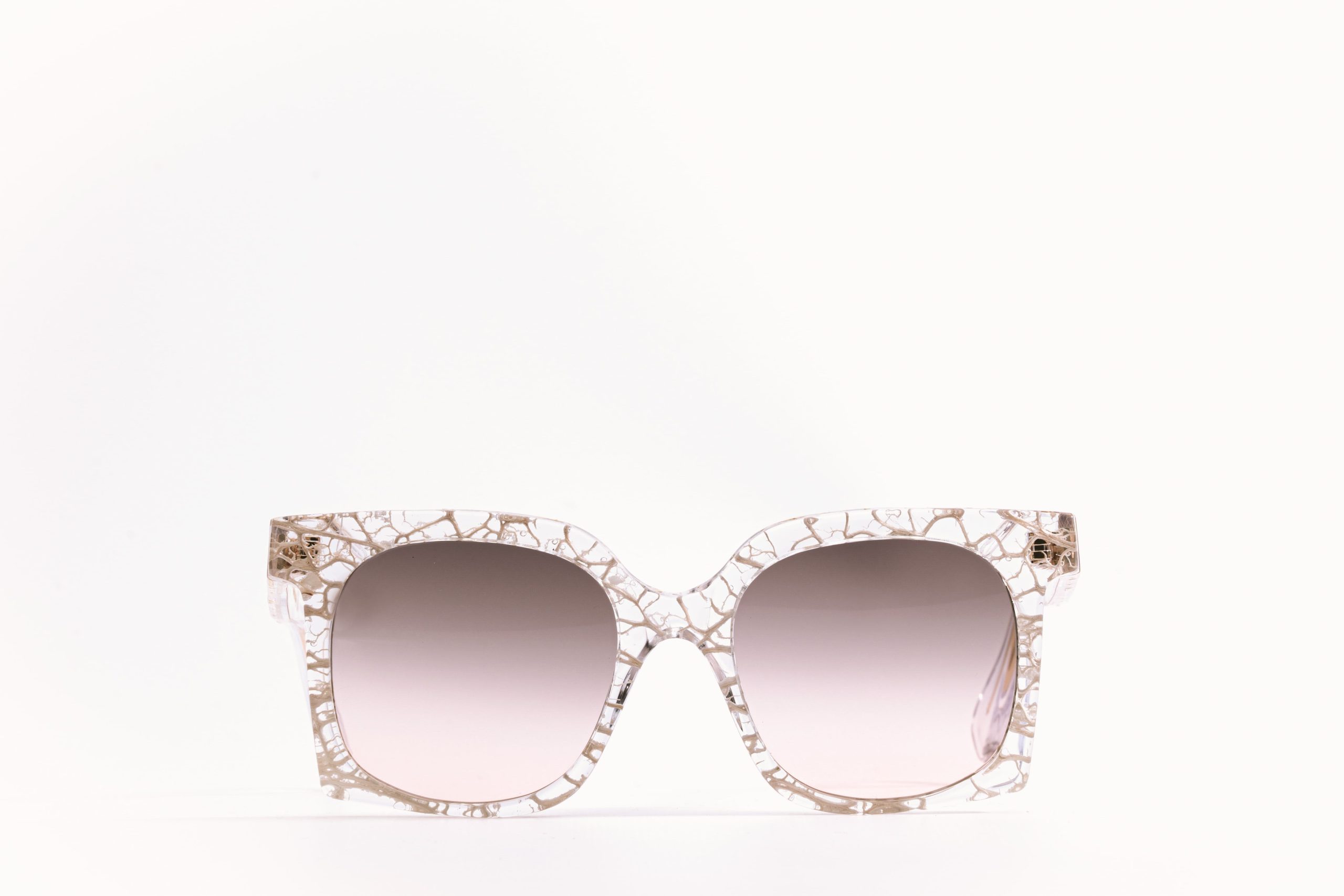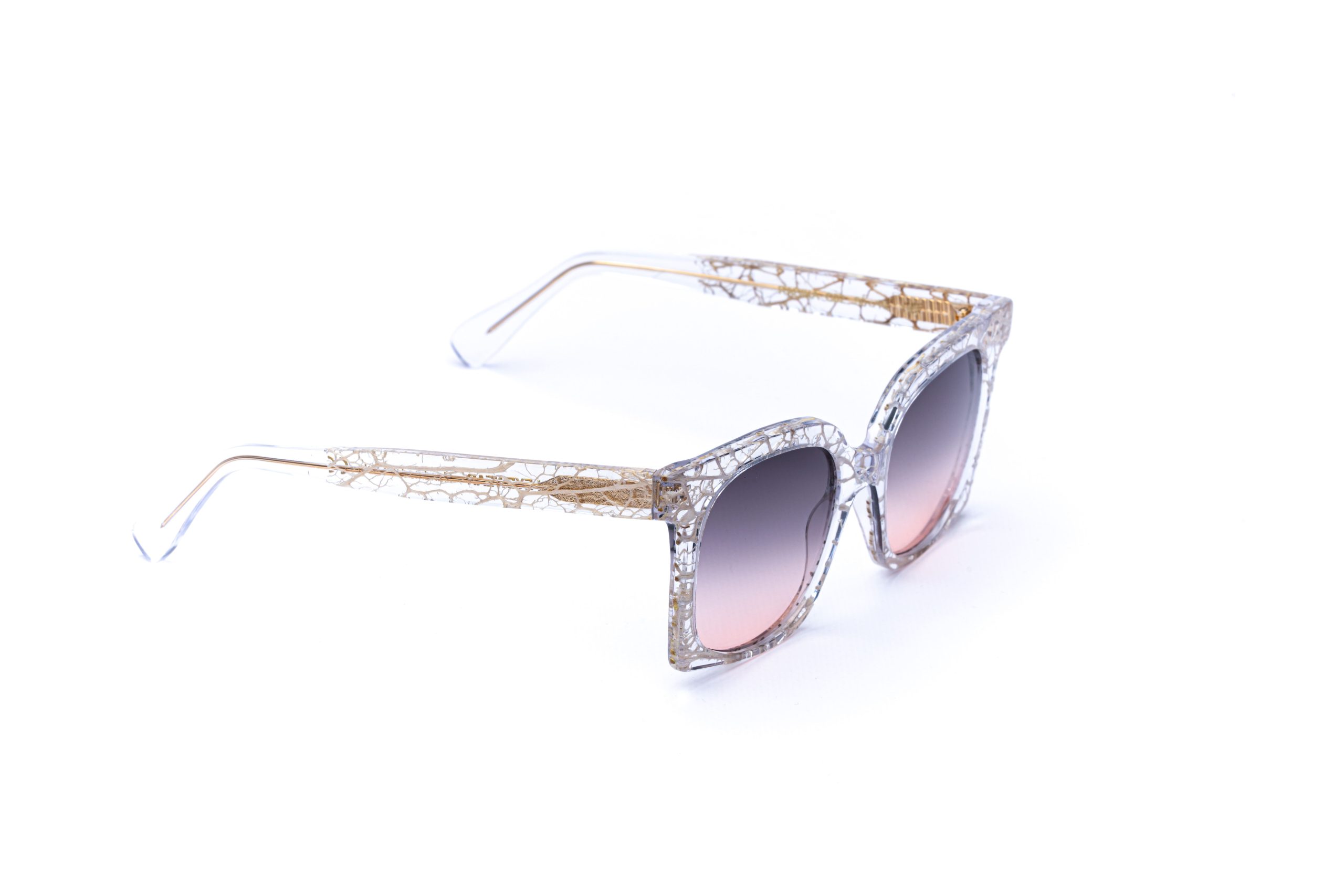 MATERIALI: Occhiali realizzati con fibra di fico d’india, acetato di cellulosa Mazzucchelli. Dettagli metallici in croma oro.