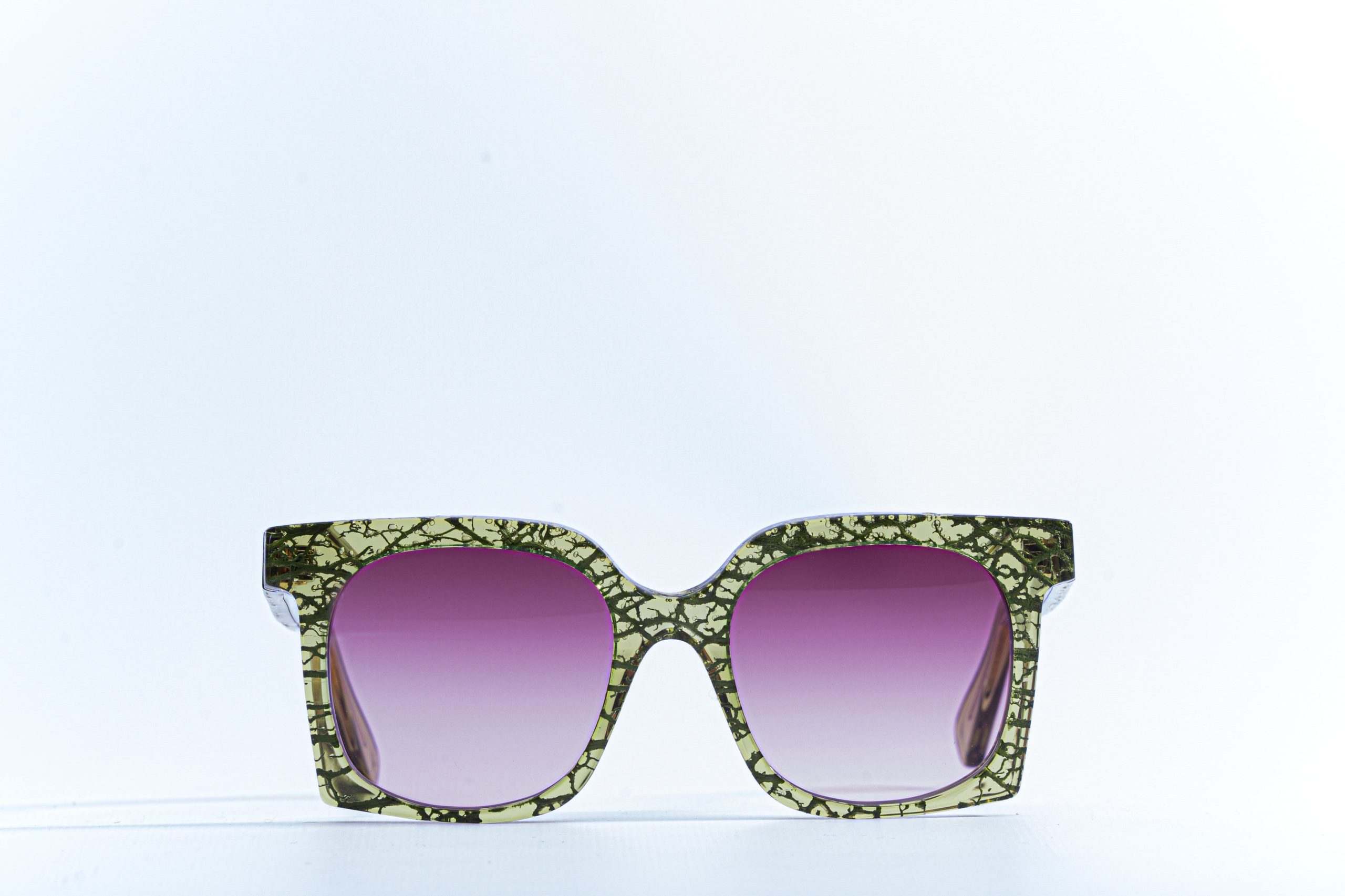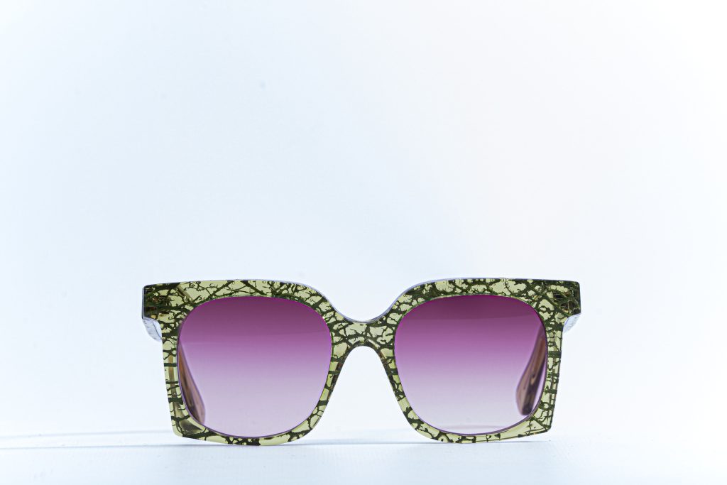MATERIALI: Occhiali realizzati con fibra di fico d’india, acetato di cellulosa Mazzucchelli. Dettagli metallici in croma oro.