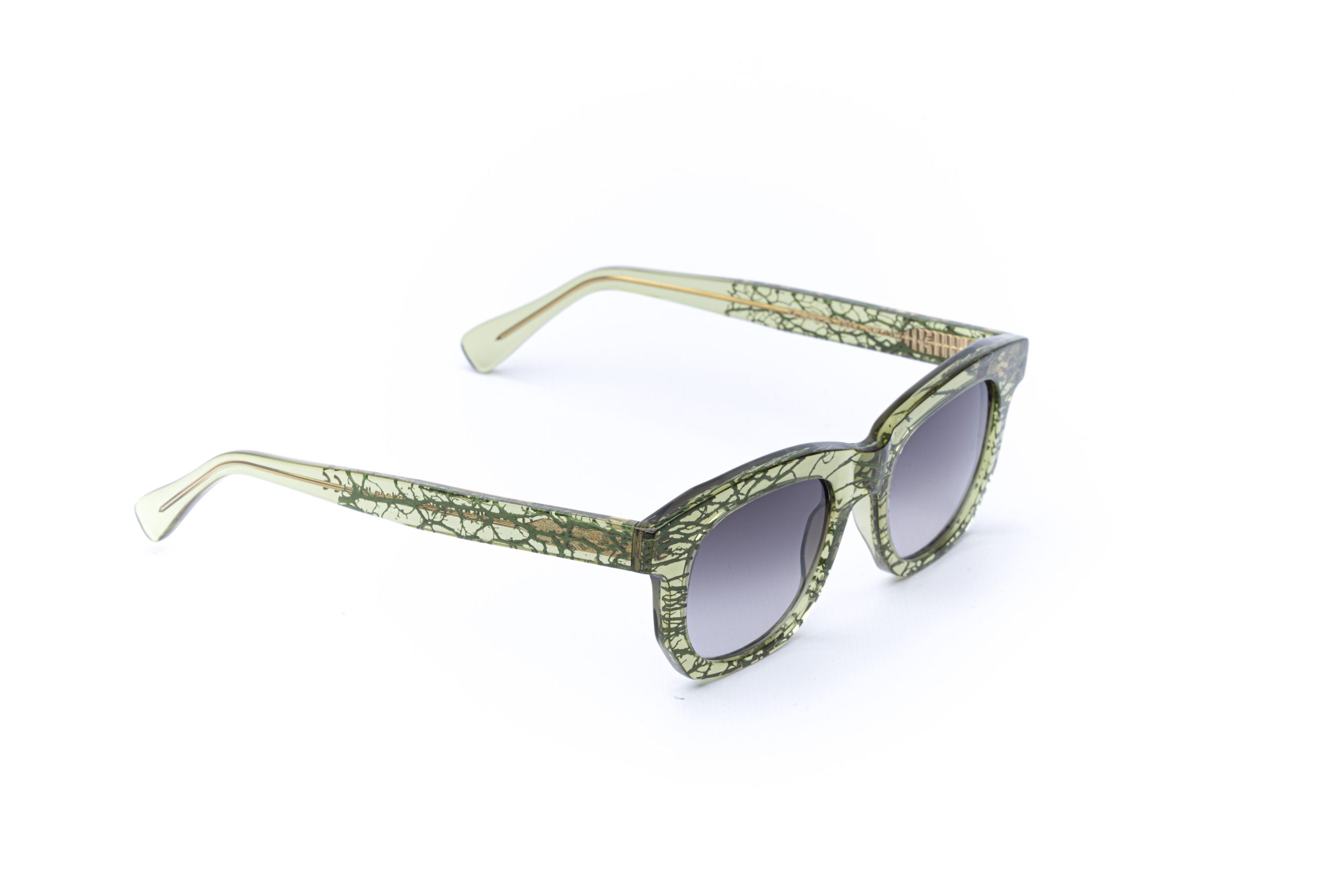 Occhiali realizzati con fibra di fico d’india, acetato di cellulosa Mazzucchelli.