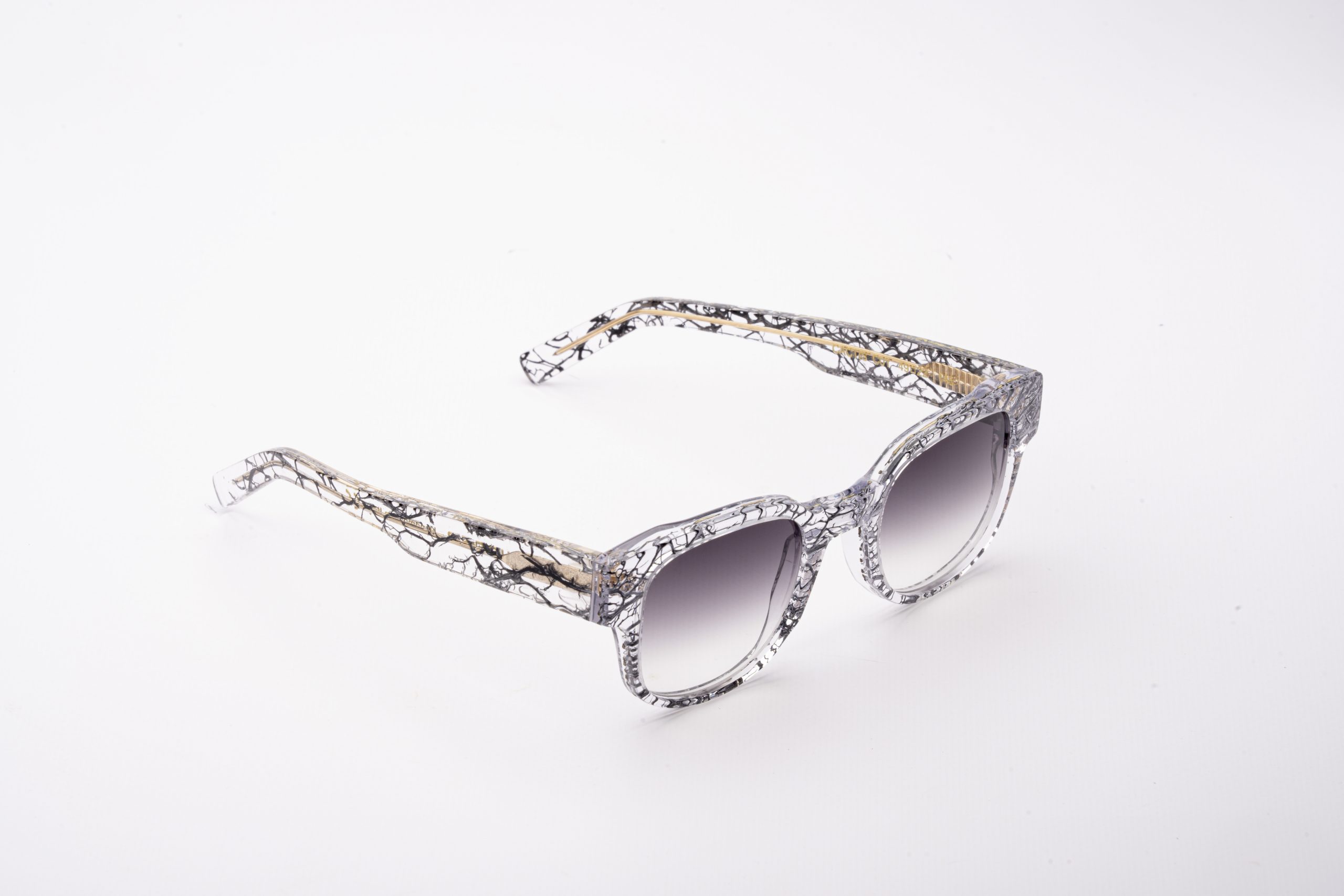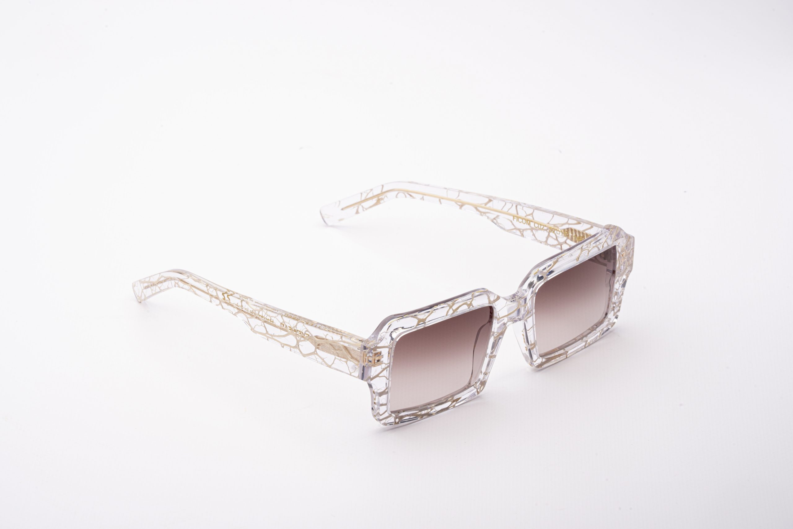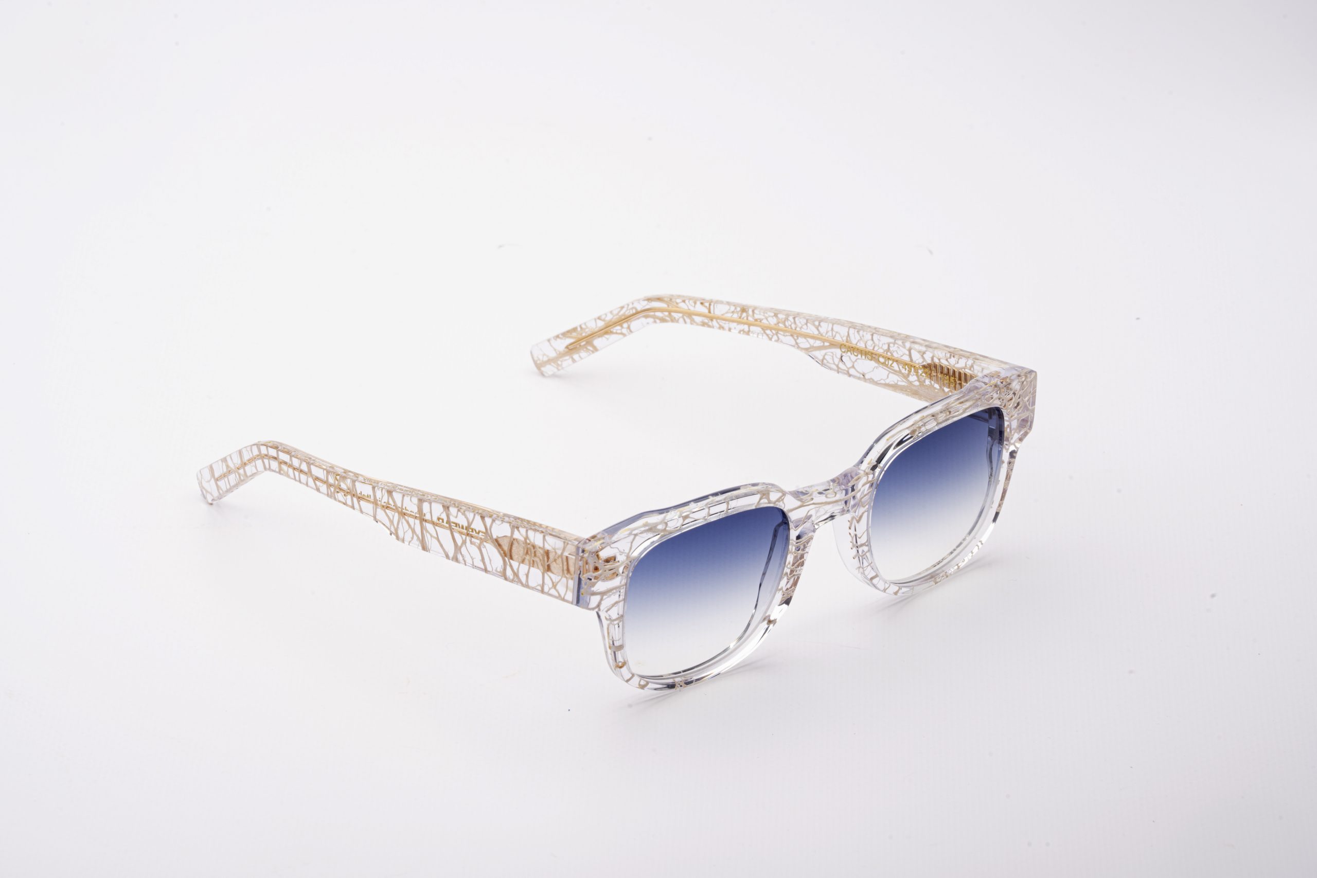 Occhiali realizzati tramite processo artigianale di raccolta, pulitura e colorazione della fibra della pianta del fico d’india. Successivamente la fibra viene inglobata, attraverso uno speciale processo di incollaggio, all’interno di lastre di acetato di cellulosa Mazzucchelli.